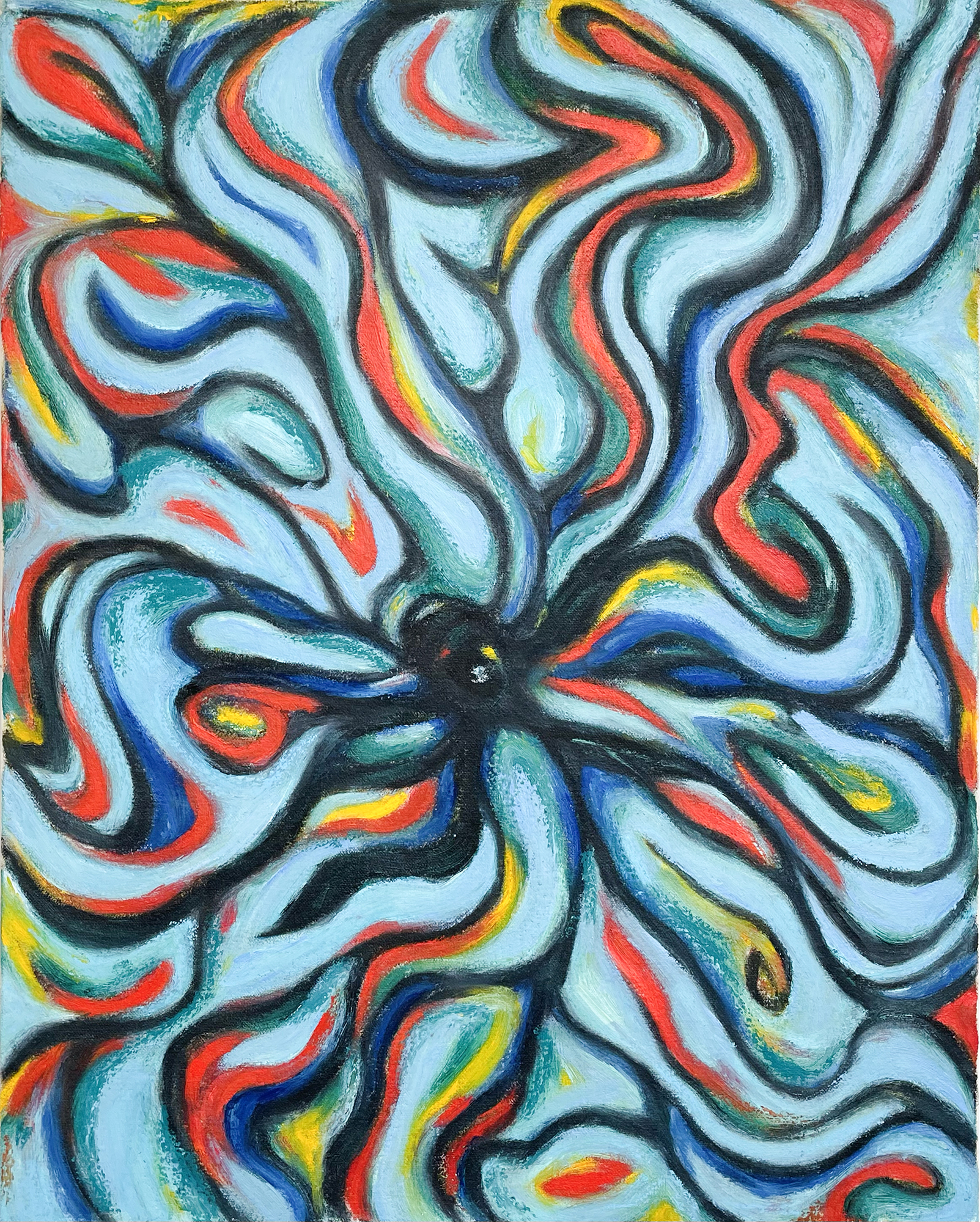 This series expresses the flow of energy and the search for balance between my inner self and the surrounding environment. Hidden emotions and energy move through the paintings, connecting history and the present, the personal and the collective, through contrasting colors and interwoven strokes. I use art as a way to reconnect with myself, others, and the world, exploring both conflict and poetic presence.